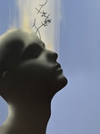 “Upload Complete” is about how we give away pieces of ourselves just to stay visible. Thoughts become content. Pain becomes aesthetic. We trade honesty for attention — and call it connection. This isn’t enlightenment, it’s exhaustion. The head is tilted up, not in hope, but in surrender. The system doesn’t take your soul. You upload it yourself — with a smile and a filter.
